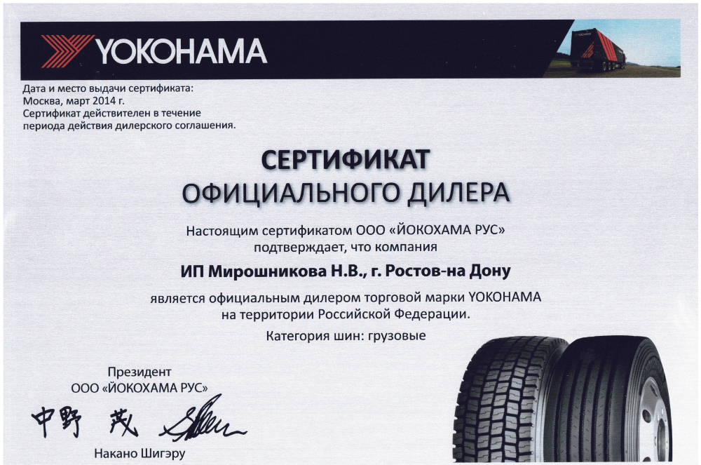 Официальное дилерство Yokohama