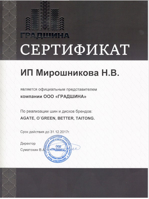 сертификат дистрибьютора AGATE, O green, Better, Taitong