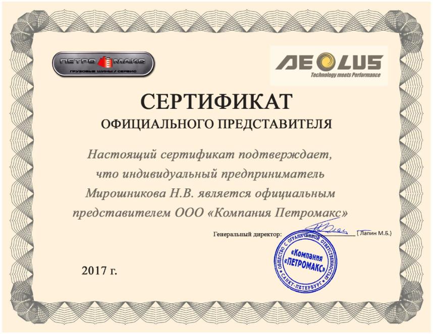 Официальное дилерство Aeolus